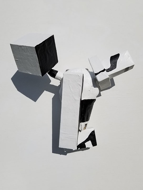 Bison skull, epoxy, polystyrene, cardboard, acrylic medium