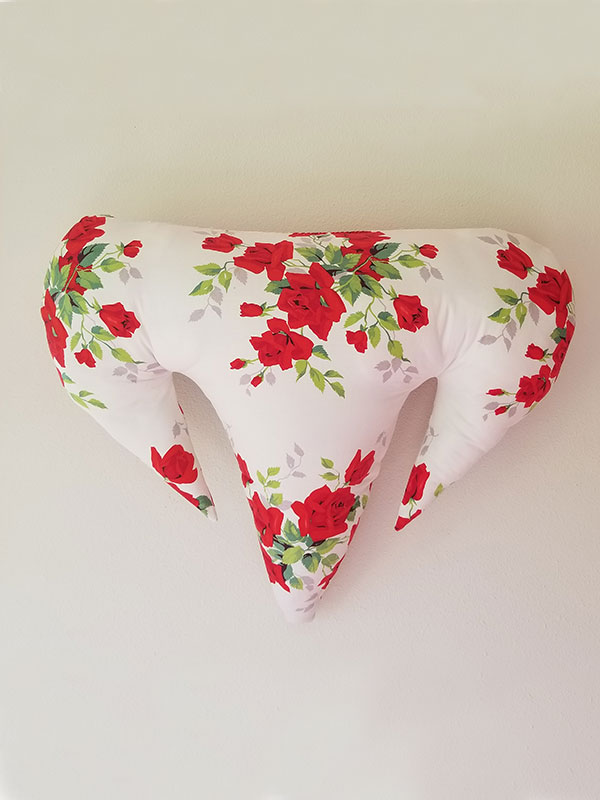 bison skull, galvanized steel wire, recycled poly fiberfill, cotton poly thread, vintage tablecloth